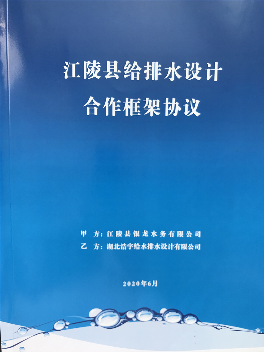 湖北浩宇給水排水設(shè)計有限公司與江陵銀龍水務(wù)有限公司簽訂合作框架協(xié)議