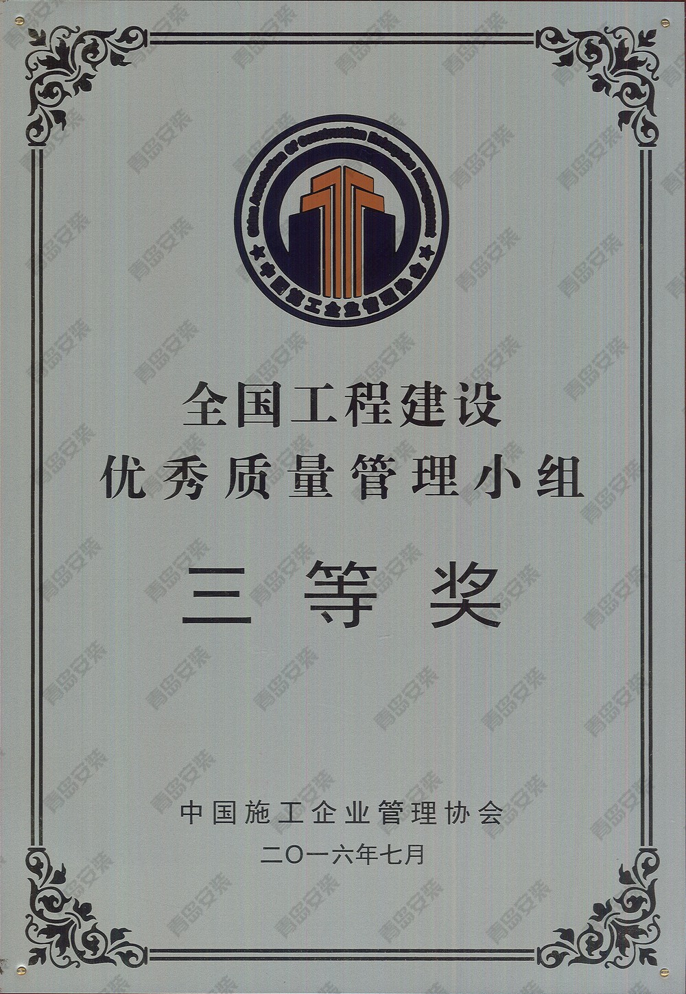 2016年度全國工程建設(shè)優(yōu)秀質(zhì)量管理小組三等獎