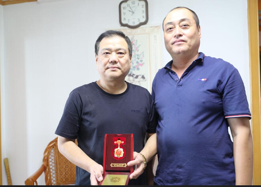 9月23日上午,青島安裝建設(shè)股份有限公司紀(jì)委書記、工會(huì)主席李金通與相關(guān)同志帶著上級(jí)領(lǐng)導(dǎo)部門和公司領(lǐng)導(dǎo)的重托,將這枚閃耀著光輝象征與最高榮譽(yù)的獎(jiǎng)?wù)滤偷搅艘娮C共和國誕生和發(fā)展奇跡并為之做出突出貢獻(xiàn)的全國勞模賀再奎及家人手中。感謝他為祖國和人民的無私奉獻(xiàn),更感謝他為青島安裝公司帶來的無尚榮耀。